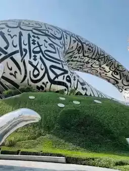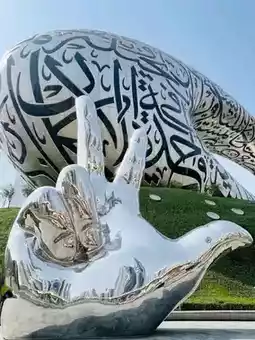 Designed by Shaun Killa, the structure is made of stainless steel and features over 1,000 panels, representing the blend of science, technology, and art. The Arabic inscriptions on its façade are quotes by Sheikh Mohammed bin Rashid Al Maktoum about the future.