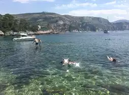 I personally swam at a rocky area rather than a sandy beach. The seawater was incredibly clear and beautiful.