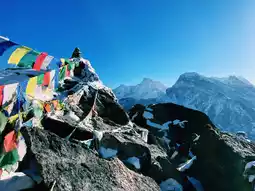 The real showstopper! Climb at sunrise for one of the best panoramic views in the Himalayas — including Everest, Lhotse, Makalu, and Cho Oyu all at once. Unreal. 🌄
