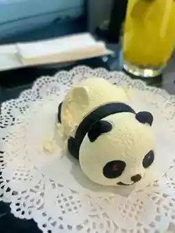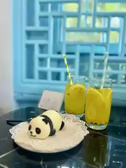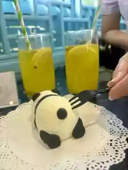 We ordered the kumquat passion fruit drink and panda cheese cake recommended by the staff. The kumquat passion fruit drink is refreshing and slightly sweet and sour, perfect for the somewhat stuffy spring weather. Even more eye-catching is the cute panda cheese cake, which looks just like an adorable panda. The filling is a rich and delicate blueberry jam, making it both delicious and fun.
