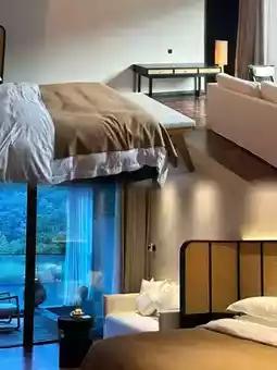 The rooms in the homestay are simple yet elegant, with wooden furniture exuding a warm luster, complementing the green mountains and waters outside the window. In the morning, the first ray of sunlight gently shines on the bed through the light curtains, waking up the sleeping traveler. Opening the window, the fresh mountain breeze carries the fragrance of grass and trees, and the distant mountains are faintly visible in the morning mist, like a moving ink painting.