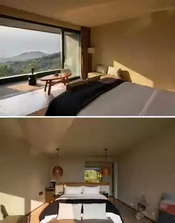 The hotel is large in size but not large in volume, just to make every room spacious, with reasonable division of guest room space. The designer uses natural wood, terrazzo, and natural light to create a simple and quiet wabi-sabi charm. Just lying on the sofa watching TV or sitting on the balcony looking at the beautiful scenery outside the window can satisfy everyone's rest journey.