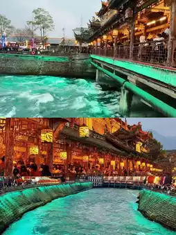 Go down from Dujiangyan Scenic Area to Guanxian Ancient City. The ancient city is quite commercialized, but the food is pretty good. We had rabbit head recommended by a local friend. After dinner, walk 5 minutes to Tianfuyuan to see the Blue Tears!