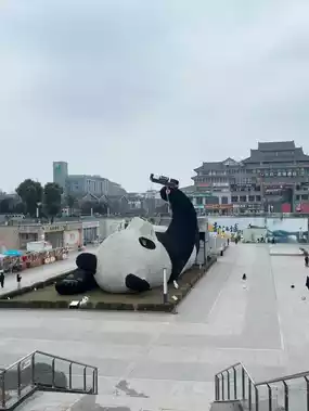Panda selfie is another important landmark and tourist attraction in Chengdu, but it is not in the city of Chengdu. It is in Dujiangyan, which you have to take a train to (tourists tend to stay in this city because it is close to the way to the Four Girls Park, Bipenggou, etc.).