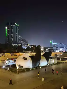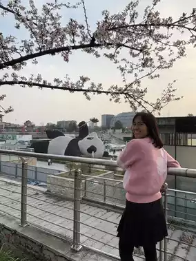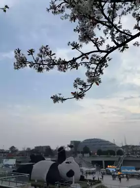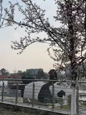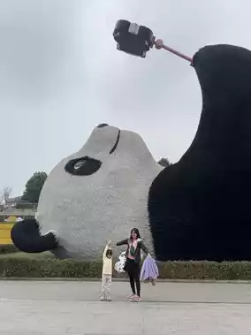 Some people come and are disappointed. They say that the panda is black, dirty, and old. We think that it is normal because it is outdoors and exposed to the sun, wind, and dust all the time. It would be difficult to clean it. For us, we think it is okay. It is a landmark to take pictures. The composition is beautiful.