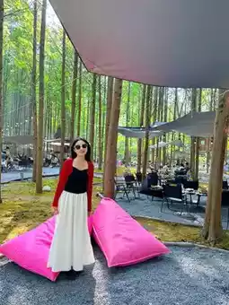 The most successful time of following the trend, I check it out every day and finally I can check in with my child! The campsite 🏕️ is very beautiful 🤩, located in a green forest 🌳, with cabins 🛖, pink sofas, surround sound for the entire campsite boss, and resident singers 🎶, giving it a very high-end feel! So comfortable! The automatic water mist every two minutes makes you feel cool and comfortable when taking photos~