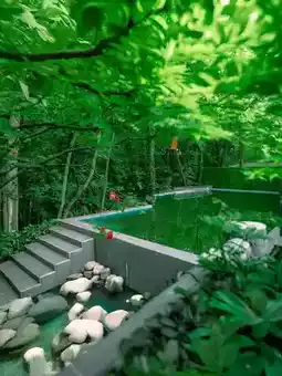 During the day, sunlight filters through the leaves onto the pool, making every shot a "wild mountain hot spring masterpiece." At night, the pool lights up with strings of lights, and the mist swirling around feels like stepping into a fantasy drama scene. Secret tip: The hot spring water is sourced from a 2,000-meter-deep mineral spring, leaving your skin silky smooth like you’ve applied body lotion after soaking!