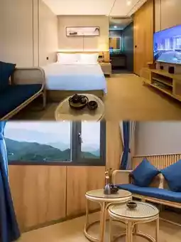 - Natural wood healing space: Creamy white walls paired with light walnut furniture, even the clothes hangers are custom bamboo designs. As soon as you enter, you smell a faint woody fragrance. The most stunning feature is the 270° panoramic floor-to-ceiling window; lying in bed, you can watch the mountain mist drifting through the bamboo forest, like sleeping in the filming location of "A Dream of Splendor"🌿