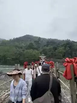 Anlan Bridge Swing rope bridge (rebuilt 1970s) March mid-span—dare the wobble!