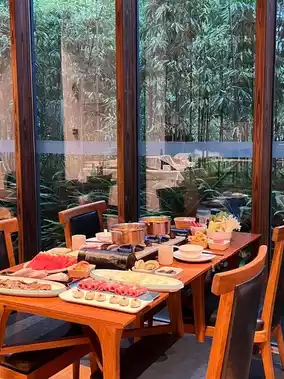 - Dinner choices: terrace hotpot, Chinese soup pots, Jiaozhi Chicken (fish maw chicken soup), BBQ