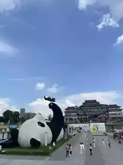 • Use a wide-angle shot to include the full panda statue and yourself, or use a tripod for versatile selfie angles.