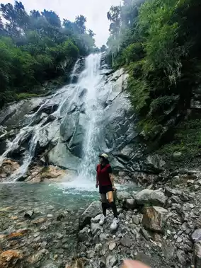 • 9:30 Leishenwang Waterfall: Navigate to "Rongguilinka Campsite," the waterfall is hidden in the primeval forest. A 10-minute hike through dappled light forest trails brings you face to face with mist and an instant cool down! The campsite offers barbecue, hot pot, and coffee. Highly recommend trying the Tibetan yak meat hot pot paired with a cup of freshly ground coffee, creating a perfect picnic atmosphere against the snowy mountain backdrop.