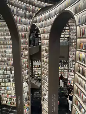 Afterwards I headed to the large mall to see the bookstore. Honestly, it was a very strange experience. The place was almost completely empty, with many, many stores permanently closed. It has a real "ghost mall" feeling. It seems its primary purpose now is for people to take photos from the viewing decks with the scenic area in the background—and then leave. There's not much else to do.