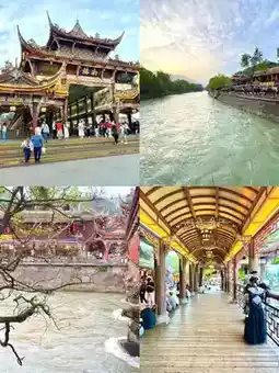 • 🏯 Surrounded by ancient Chinese architecture and temples, such as Erwang Temple (⛩️)