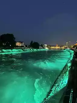 • 🌊 Scenic views of the Min River (岷江), known for its strong and clear currents
