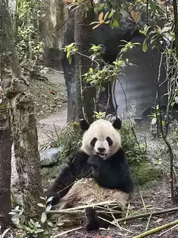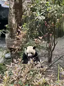 We found a lot of pandas here, and we got to see them up close and personal, and it wasn't crowded. They even showed off bamboo eating, climbing trees, and playing around. Besides the pandas, there were also red pandas, which were also very up-close. There were also beautiful flower gardens along the way for photos.