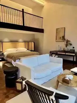 The homestay is full of design charm, wooden furniture 🪵 + warm tones 🧡, creating a cozy atmosphere