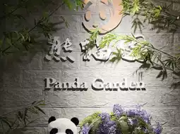 As soon as we arrived, the first thing we saw was a large panda standing at the door, waving "Welcome!" It was so adorable we had to grab our camera and snap a photo before we even checked in! 📸 Just seeing the hotel entrance, we knew we were dedicated to creating photo opportunities everywhere, from the panda neon sign, the arched wooden doors, and the charmingly warm and welcoming little garden.