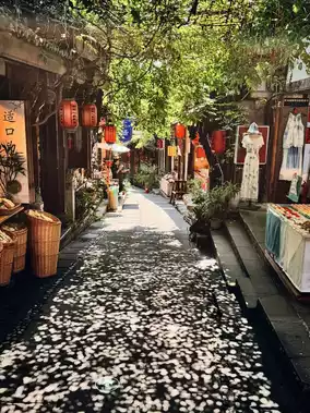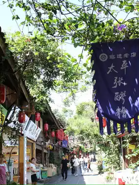 After exiting Lidui Park, walk toward South Bridge. Cross the bridge to reach the Guanxian Ancient City shopping district.