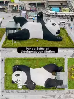 Giant panda taking a selfie in the middle of Yang Square