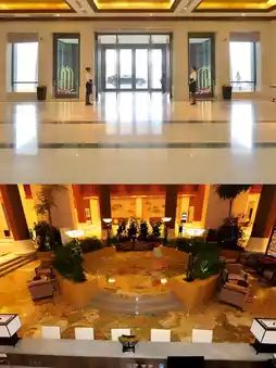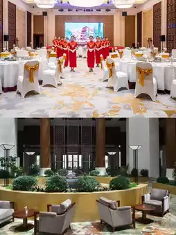 - Hotel Overview: Supervised by the State-owned Assets Supervision and Administration Commission of Gansu Province, the hotel is jointly invested and built by four large state-owned enterprises in the province. It is the main venue for the reception of state guests at the Silk Road (Dunhuang) International Cultural Expo. The hotel covers an area of about 1,200 mu, with a total construction area of 104,754.8 square meters. It features Han and Tang architectural styles, with a greening rate of 85%.