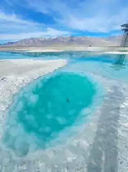 - 🌨️Chaka Salt Lake: The salt-covered lake surface is as white as snow, reflecting the blue sky and white clouds like a mirror of the sky, pure and extreme.