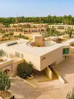 Backed by the Mingsha Sand Dunes ⛰️ and facing endless vineyards 🍇