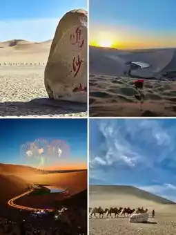 Day1️⃣: Arrive in Dunhuang→Lunch→Mingsha Mountain & Crescent Moon Spring (camel ride + sandboarding + sunset)→Desert camping