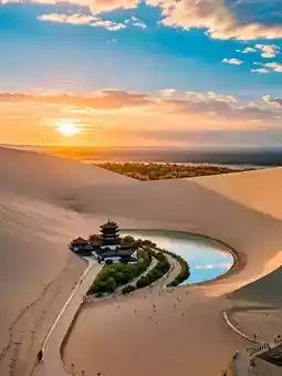 • Crescent Lake & Singing Sand Dunes: Camel rides + desert magic