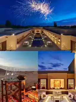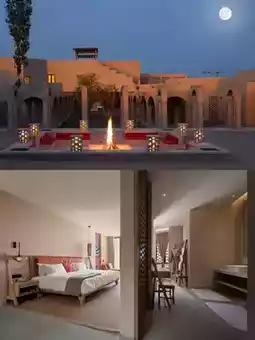 Designed like an ancient manor with stone walls and wooden corridors, dine or enjoy coffee at the Stargazing Pavilion while admiring the Singing Sand Mountains.