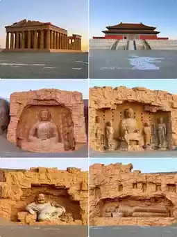 Han Great Wall and ruins of large and small square cities. Yumen Pass has no replicas, only ruins, highly recommended, especially the large square city which is very impressive.