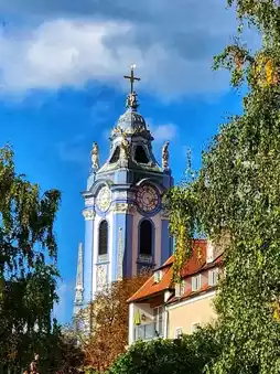 Climb the scenic trail through vineyards and forests to reach the fortress, where breathtaking views of the Danube River and the Wachau Valley unfold beneath you. The golden rooftops of Dürnstein, the winding river, and the lush green hills create a view so stunning it feels almost unreal.