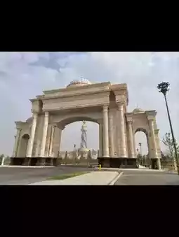 This massive monument, built under golden arches, is a landmark of Dushanbe.
