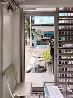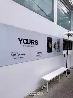 #tripพาบินเที่ยวจีน Yours A small coffee shop that has just opened near Pichai Intersection, not far from Sriyan. The shop is located next to Kai Kaew Duck Noodle. It is a white square block with trees, chairs, and umbrellas for taking pictures. It looks like a minimalist style.