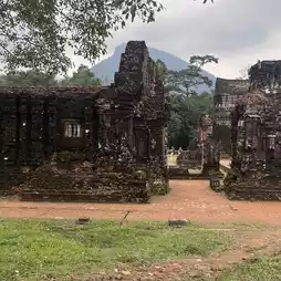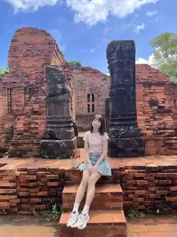 In some areas, remnants of bomb craters from the Vietnam War are still visible—a stark reminder of history's wounds, making these surviving cultural relics even more precious. When sunlight spills over the crumbling towers from the mountain peaks, the red bricks glow softly. In that moment, My Son truly lives up to its name, exuding a beauty that is both solemn and mysterious.