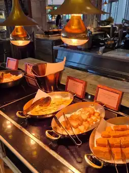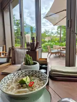 A refined Vietnamese breakfast buffet enjoyed in a spacious and relaxed setting.