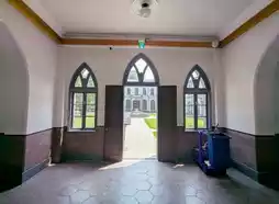 The main hall is a two-story brick structure with a roof covered in traditional Taiwanese tiles. Its pointed and rounded arch windows, along with the whitewashed exterior walls, blend Western religious architectural elements with Taiwanese regional characteristics.