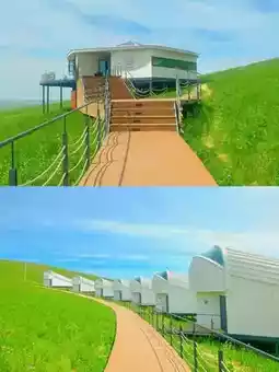 There are abundant entertainment facilities: horse riding, archery, grass skiing and other activities. The visitor center has a grassland library, cafe, handicraft shop, observation deck, etc. Reading a book while watching the sunset on the grassland is very humanistic.