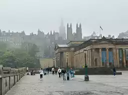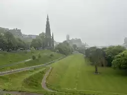 As the afternoon progressed, the fog grew thicker, and the drizzling rain added a lot of mystery to the city. Some pedestrians opened their umbrellas, but many more seemed to enjoy walking in the misty Edinburgh. People slowed down, some even sat on the benches at the edge of the Princes Street Gardens lawn, admiring the beautiful rain-soaked scene before them. And in my heart, there was an impulse; since I had already entered this fairy-tale world, why not let myself blend into this beautiful scene and become another splash of color?