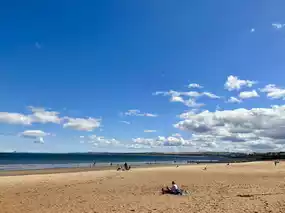 The beach is close to Edinburgh, so if you take a bus and enjoy the scenery, you'll be there in no time. 😆 There are brunch spots right on the beach, but expect a bit of a wait even on weekdays. 😅 Still, brunch with a sea view is delicious.