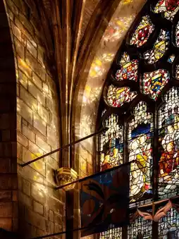 The most striking feature of its exterior is the crown-shaped spire, which exudes grandeur even from afar. Inside, the spacious area is adorned with intricate stained glass windows, stone columns, and vaulted ceilings. A particularly unique feature is the "Thistle Chapel," reserved for members of Scotland's highest knightly order. Though small, it showcases exquisite carvings, with a ceiling featuring golden thistle motifs symbolizing Scotland.