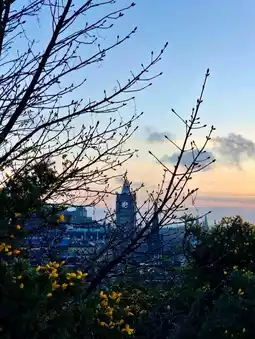 Watching the sunset from Calton Hill is an unmissable experience in Edinburgh. The golden light reflecting off the stone buildings, the majestic castle standing in the distance, and the city skyline blending with the horizon create a breathtakingly beautiful scene 🌅🏰. As the sun sets, the entire city seems to glow.