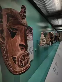 Nearby, ceremonial masks from diverse cultures shimmer with color and spirit. Used in rituals, dances, and divine performances, they blur the line between human and sacred. Feathers, gold leaf, lacquered wood—each mask is a moment of transformation, a bridge between the earthly and the divine.