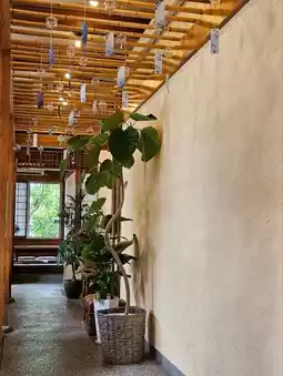 When you enter the restaurant, the first thing that catches your eye is the "wind chime shelf" with glass wind chimes hanging from the ceiling.