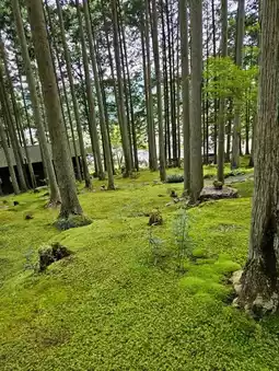 A vast garden covered in moss.