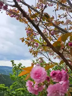 This is a cherry blossom spot in the village of Takanoji.