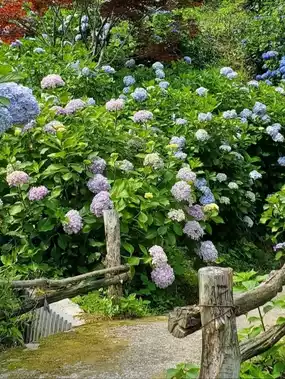 There are also spots here and there where hydrangeas are blooming in abundance. The colorful flowers bloom like a wall, and it's sure to be a photogenic spot. Try to find them while you're walking.