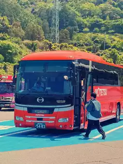 Let’s talk about the bus experience. The departure point in Matsuyama is Matsuyama Station, but since I was staying near Okaido, I boarded the bus there, saving myself the hassle of backtracking. I must commend Japan's punctuality—the bus arrived exactly on schedule. Tickets were purchased in advance at the Iyo Bus Okaido Service Center, and the driver assisted with loading luggage and confirming seats.