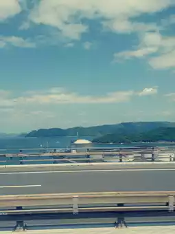 The entire trip took about three hours, which is roughly the same as taking the JR train. Midway, the bus stopped at Toyohama Rest Area in Kagawa before crossing the Seto Ohashi Bridge. The most unforgettable part was when the bus drove onto the bridge—the blue skies, white clouds, and the scattered islands of the Seto Inland Sea created a breathtaking vacation-like atmosphere.
