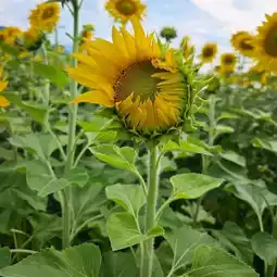 "Smiles under the summer sky and sunflowers 🌻 Experience a heartwarming moment at Hagata Farm."